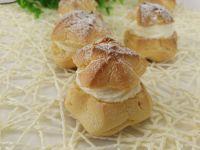 9.然后将烤好的泡芙切开两半,挤上奶油。
